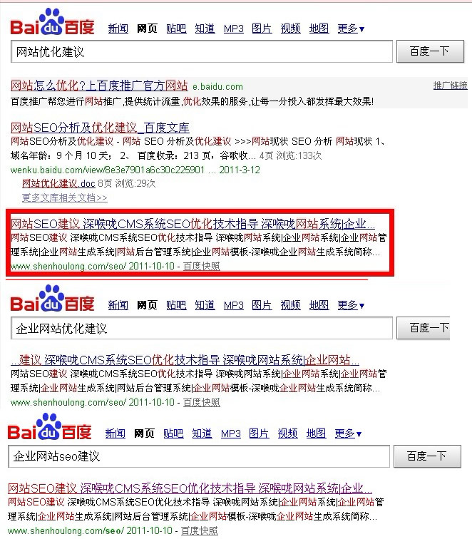 2:关键字只能设计一次,不能重复。不论是百度还是google,你搜索任何一个关键字,其搜索结果一般有7个以上的标题设计都只包含有一次的关键字;包含2次或2次以上的关键字设计在前几年可能会有比较明显的效果,现在搜索引擎的算法每天都在改,这样的重复关键字设计已经不适用了。